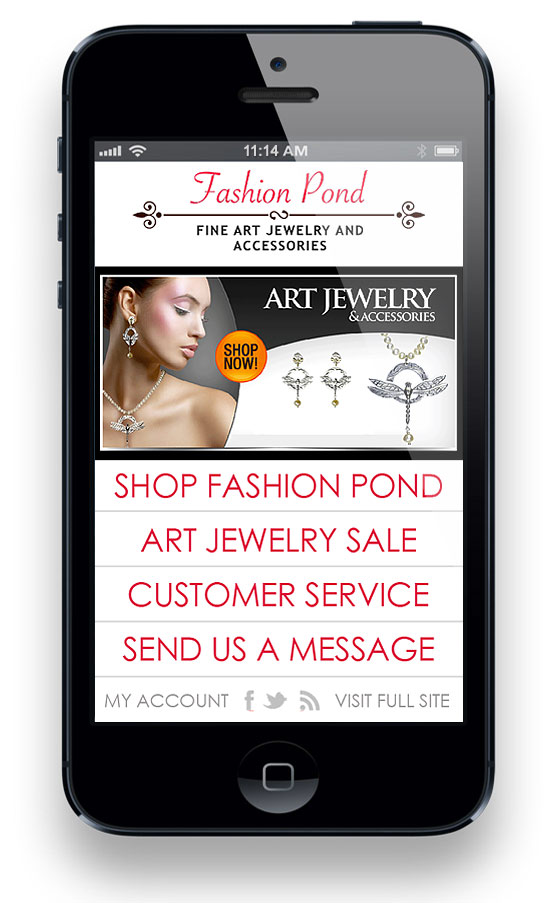 With the heavy loading wordpress format of their website, the mobile website offers a fast and easy-to-navigate option for mobile phone users. Instead of the pseudo-responsive wordpress structure, the FashionPond mobile website is a mobile optimized landing page that loads very quickly and gets their customers to the right place.